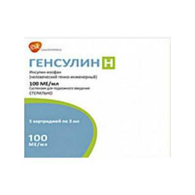 Генсулин Н - человеческий инсулин, полученный с использованием технологии рекомбинантной ДНК. Является препаратом инсулина средней продолжительности действия. Взаимодействует со специфическим рецептором внешней цитоплазматической мембраны клеток и образует инсулин-рецепторный комплекс, стимулирующий внутриклеточные процессы, в т. ч. синтез ряда ключевых ферментов (гексокиназа, пируваткиназа, гликогенсинтетаза и другие). Снижение содержания глюкозы в крови обусловлено повышением ее внутриклеточного транспорта, усилением поглощения и усвоения тканями, стимуляцией липогенеза, гликогеногенеза, снижением скорости продукции глюкозы печенью.