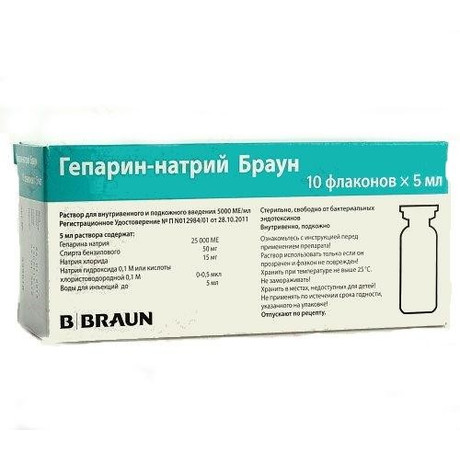 | гепарин натрия | 5 000 МЕ | 25 000 МЕ |