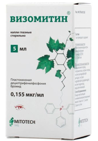 Капли Скулачева (Визомитин) содержат в составе бромид пластохинонилдецилтрифенилфосфония — 0.155 мкг.
