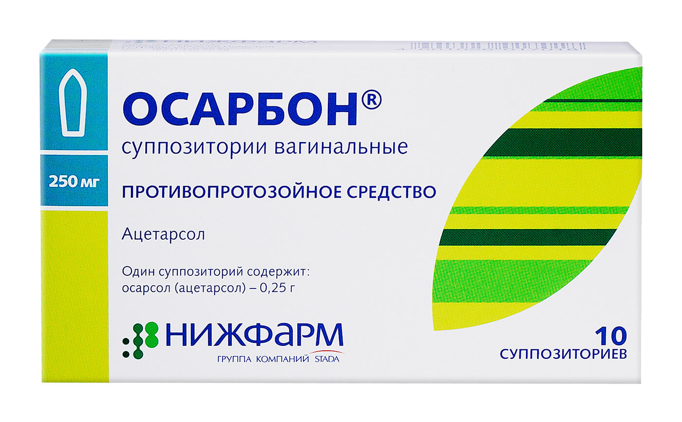 -активные вещества: осарсола (ацетарсол) -0,25 г и вспомогательные вещества: кислоты борной -0,3 г, глюкозы (декстроза) -0,3 г, витепсола-достаточное количество дополучения суппозитория массой 2,8 г.