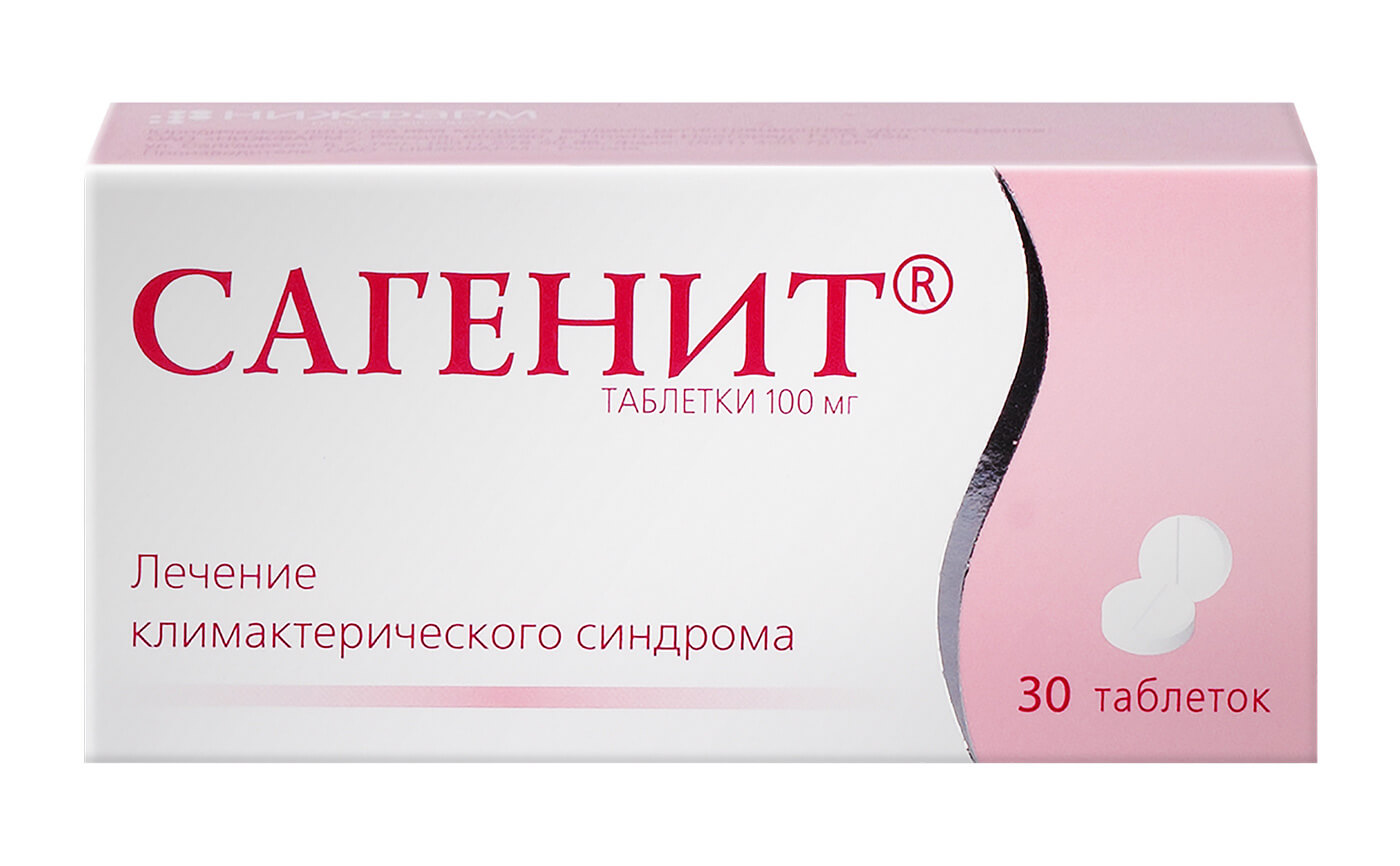 Сагенит таблетки 100 мг. По 10 таблеток в контурной ячейковой упаковке, одна или три контурные ячейковые упаковки вместе с инструкцией по медицинскому применению препарата в картонной пачке.Описание формы Сагенита: Круглые плоскоцилиндрические таблетки,белого или почти белого цвета.