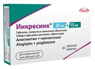 Препарат Инкресинк представляет собой комбинацию двух гипогликемических средств с взаимодополняющими и разными механизмами действия, предназначенную для улучшения контроля гликемии у пациентов с СД2: алоглиптина, ингибитора фермента дипептидилпептидазы-4 (ДПП-4) и пиоглитазона, представителя класса тиазолидиндионов.